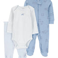 Conjunto de Pijama Carters 3 piezas: Pijama con zipper y pies, body manga larga y pantalón con pies multicolor para niño