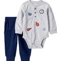 Conjunto Carters 2 pieza: body manga larga con diseño y pantalón con bolsas a los lados multicolor para niño