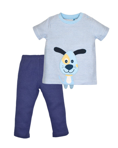 Conjunto Kinder 2 piezas: t-shirt manga corta y pantaón con diseño perro de algodón color azul para Niño