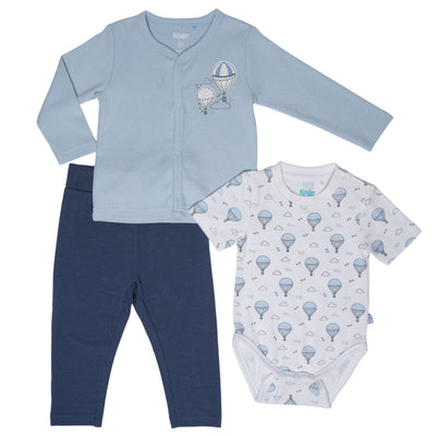 Conjunto de 3 piezas Kinder: Pantalón, Body manga corta y chaqueta diseño de globos rosado, niño