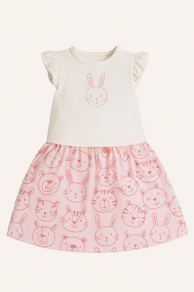 Vestido Kinder manga corta diseño animales de algodón color rosa para niña