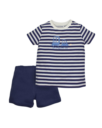 Conjunto Kinder 2 piezas: t-shirt manga corta y Short con diseño carros de algodón color azul para Niño
