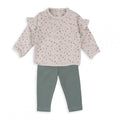 Conjunto Baby Bol 2 piezas: sueter con estampado de flores y Pantalón verde para niña