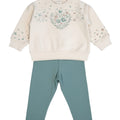 Conjunto Baby Bol 2 piezas: sueter con estampado de flores y Pantalón verde para niña