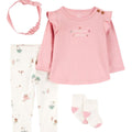 Conjunto Carters 4 piezas: blusa manga larga, pantalón, accesorio para el cabello y calcetas con estampado multicolor para niña